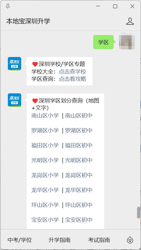 温馨提示:关注【本地宝深圳升学】微信公众号,在对话框回复【学区】获取深圳10区小学+初中学区划分查询入口、新建学校学区规划、共享/分享/大学区区别、学校志愿数量等