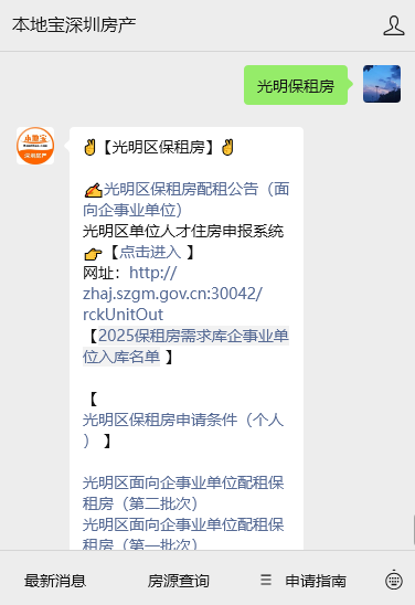 温馨提示:微信搜索公众号【本地宝深圳房产】,关注后,在对话框发送【光明保租房】可获取光明区保租房最新消息、光明区单位人才住房申报系统入口、企事业单位入库名单等信息,小编会持续更新内容。