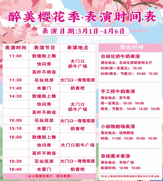 光明农场樱花节官宣啦!3月1日-4月6日,五折入园,不仅可畅游五大樱花海,还送价值20元的旋转木马体验券,更有惊喜,每周末特别表演加码。浪漫双倍,价格减半!